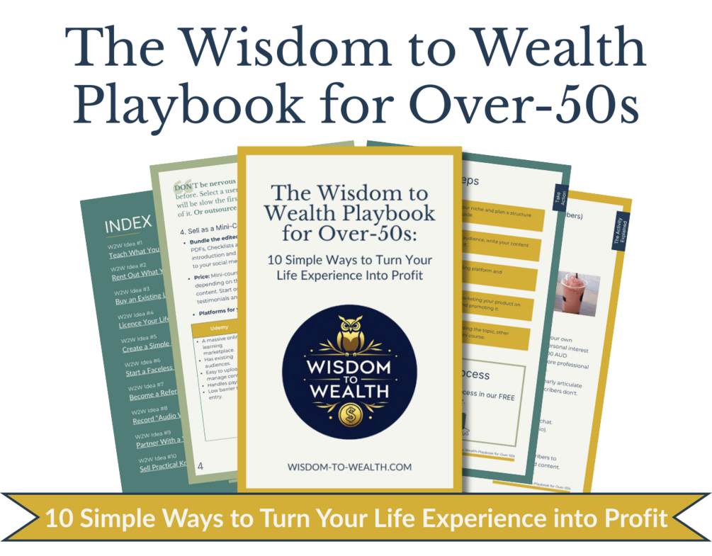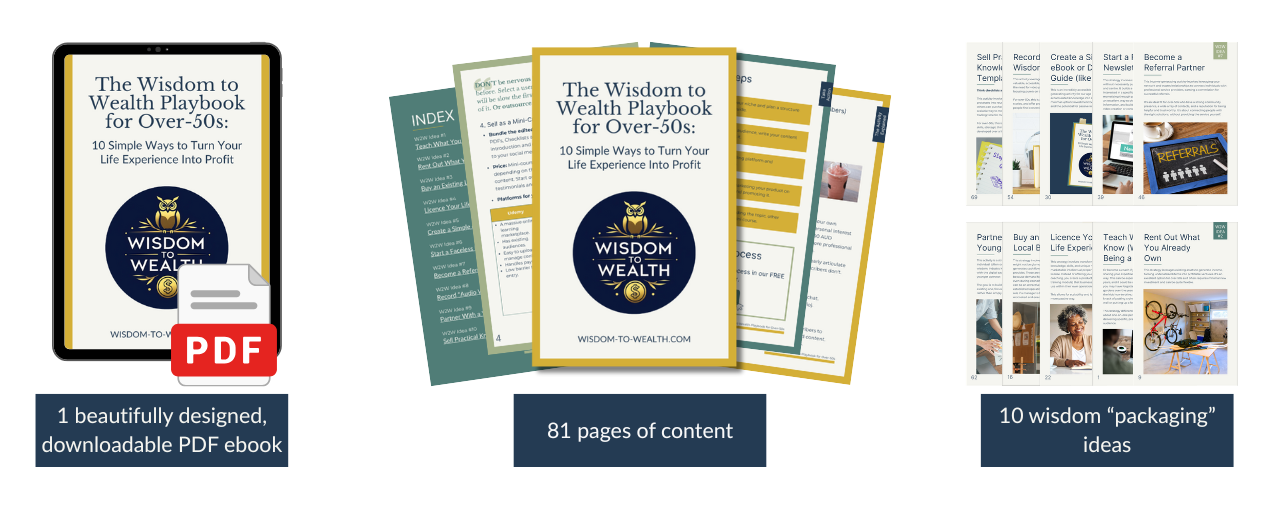 The Wisdom to Wealth Playbook for Over-50s is the perfect, low-lift way to get started!